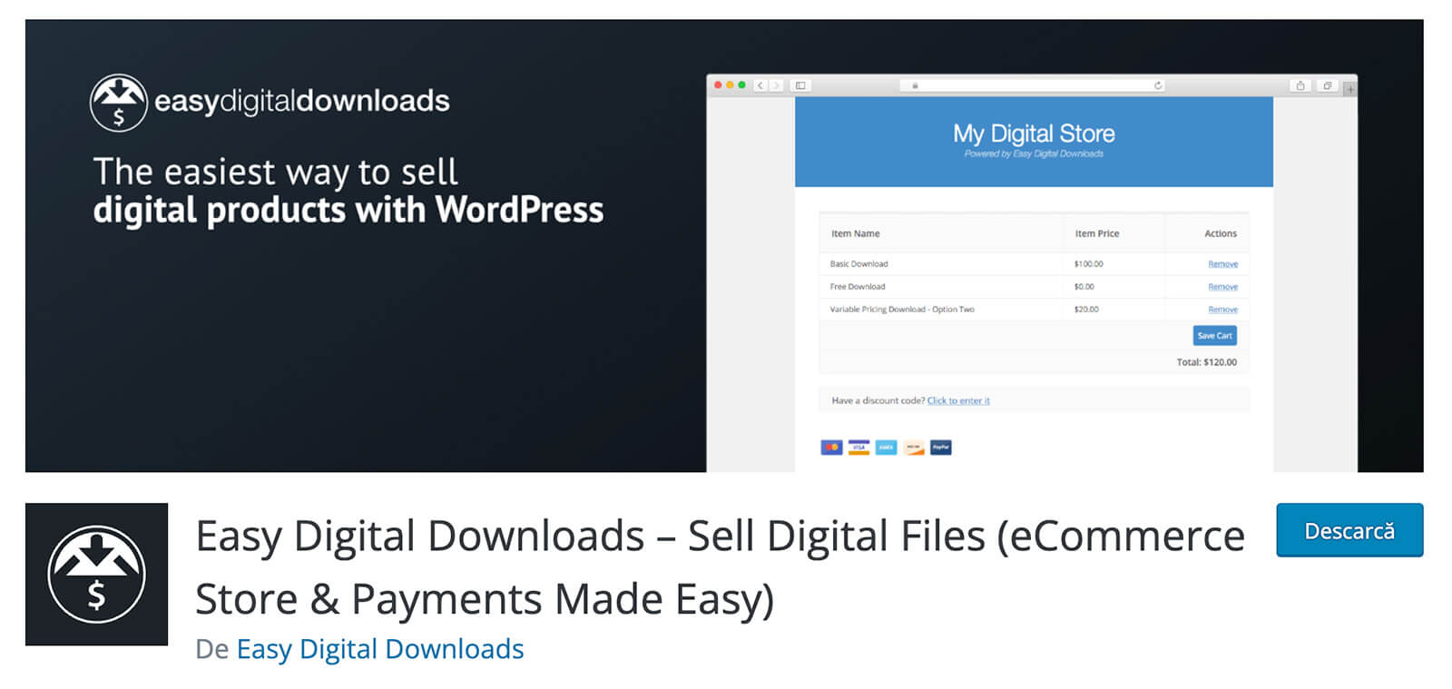 Easy Digital Downloads este alegerea ideala atunci cand vrei sa vinzi produse digitale precum ebook-uri, template-uri sau alte produse similare pe site-ul tau.