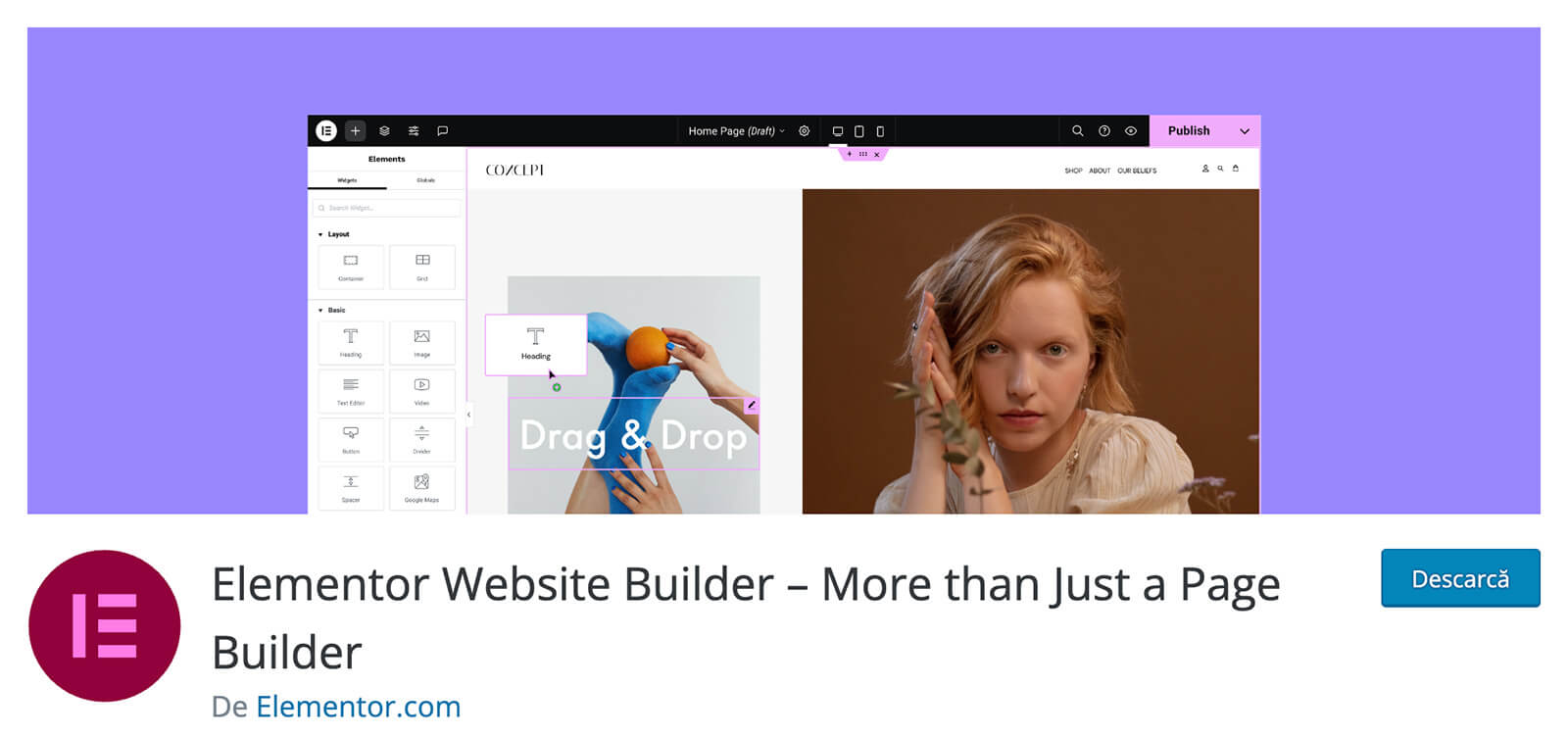 Elementor este cel mai popular constructor vizual de pagini – sau website builder. Iti permite sa creezi design-uri moderne simplu si rapid, intr-un mod vizual, fara sa ai nevoie de cunostinte de programare.