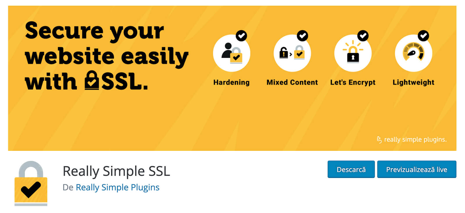 Really Simple SSL te ajuta sa implementezi un certificat SSL pe site-ul tau.